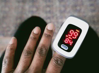 A pulse oximeter measures your blood oxygen levels and pulse. A low level of oxygen saturation may occur if you have certain health conditions. Your skin tone may also affect your reading.